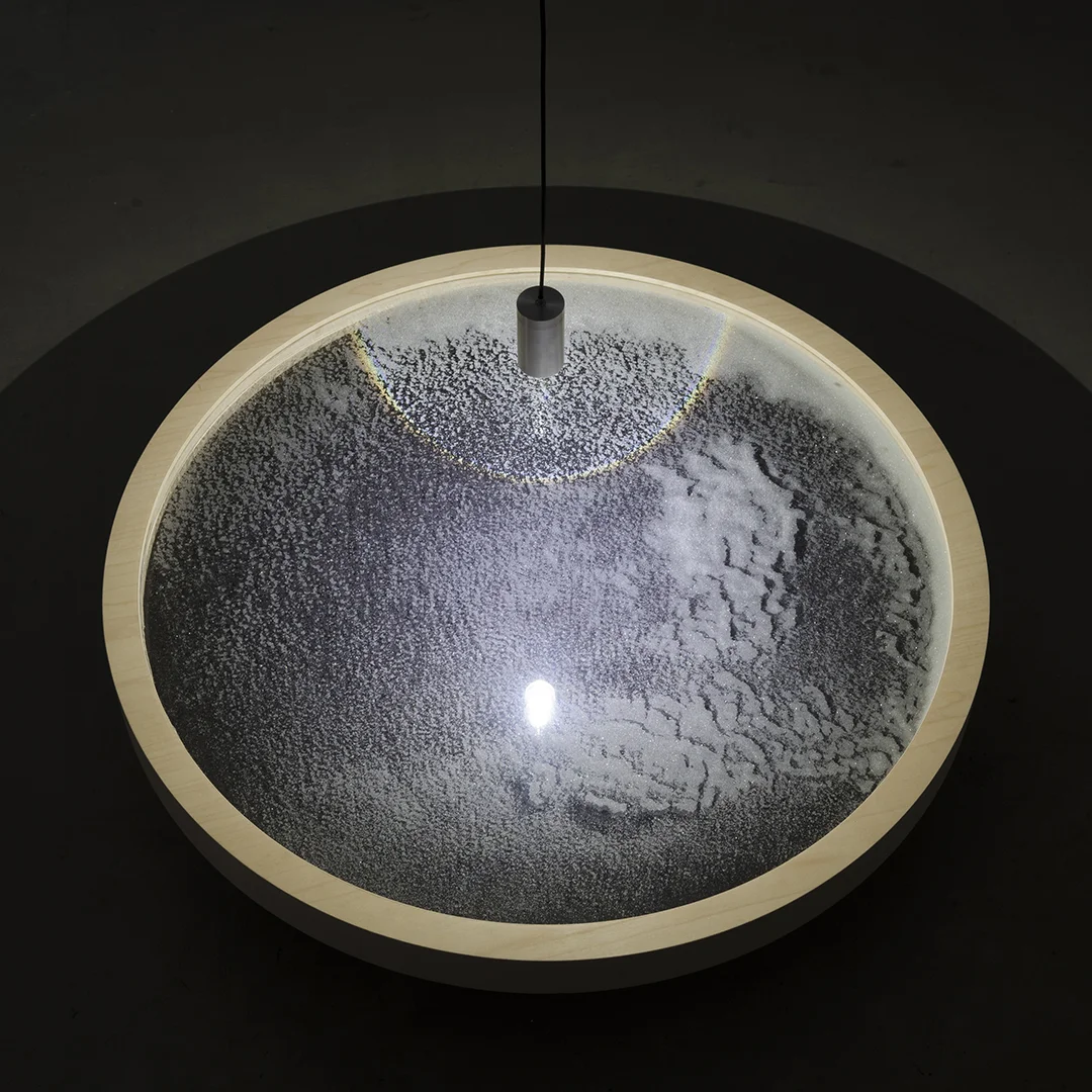 Well, 2013 | Glass microspheres, plate glass, wood, LED fixture